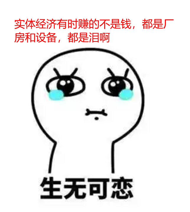 大部分实体企业在好年份时,尽管赚了不少钱,但赚的钱又大部分用于再投资,比如扩充厂房、购买新设备,所以公司赚的钱很大部分都跑到固定资产上去,变成巨额的折旧,当行业低谷时,想抽身而出,又往往没法变现这些厂房和设备。