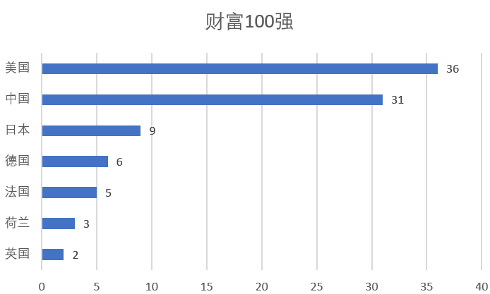 下文中,首先从GDP总量、全球财富500强数量、100强数量这三个榜单的角度,说明世界前五强国都是哪几个国家,这个代表当前这些国家的地位,我们用这个地位与新科技领域的各个国家的表现去进行对此,从而进一步判断未来。