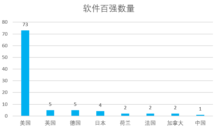 我们根据三个榜单(互联网前100强、软件前100强、IT公司市值前30名),可以看到无论哪个榜单,美国遥遥领先,无论是传统软件,还是互联网,都占据2/3以上,有些超过8成。