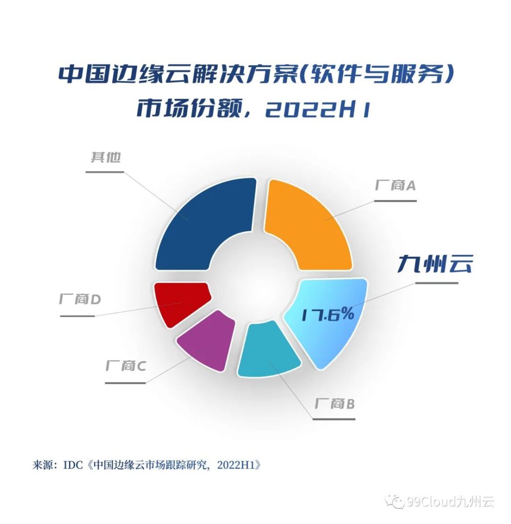 近日,全球领先的IT市场研究和咨询公司IDC发布《中国边缘云市场跟踪研究,2022H1》。报告显示,九州云作为边缘计算领域的创新领导者,以17.6%的市场份额位列中国边缘云解决方案市场TOP2。