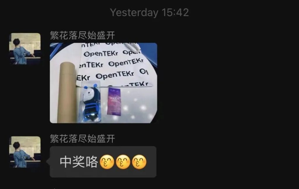 周边大奖还得感谢 EMQ、微软 Reactor、Kyligence、OpenMLDB、TiDB、PyChina 社区的赞助,以及志愿者伙伴的给力参与,奖品都已当场领取或寄出(👇 小伙伴开心感言)。