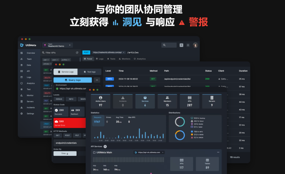 公司目前已上线公测的 SaaS 产品是一个面向已部署的 API 服务的一站式观测与运维管理平台,涵盖数据库表 CRUD、API 接口文档实时同步与在线调试、服务端请求日志查询与分析、服务端监控报警与事件管理等技术团队管理线上服务所需的一系列功能,且支持团队协作,可为不同角色和职能成员分配细粒度权限。