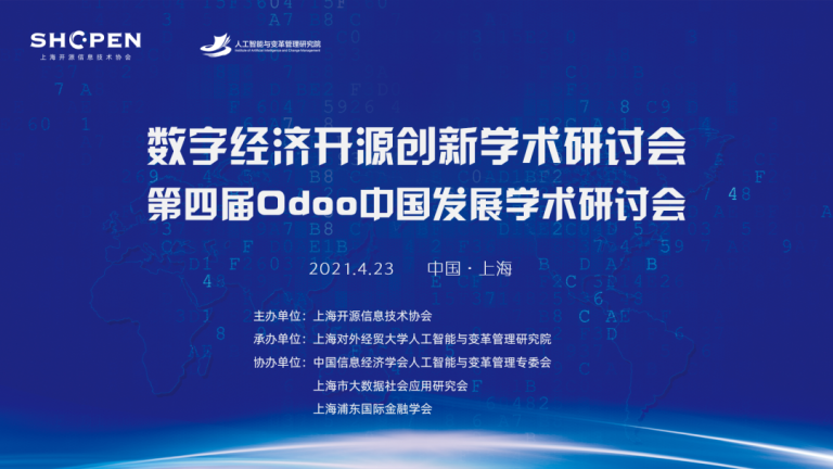 4月23日,由上海开源信息技术协会主办,上海对外经贸大学人工智能与变革管理研究院承办的“数字经济开源创新学术研讨会”暨“第四届Odoo中国发展学术研讨会”在上海举行。