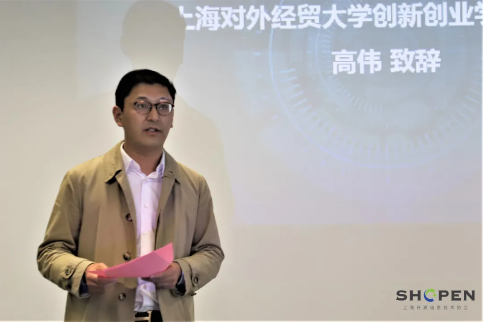 上海开源信息技术协会副秘书长、上海对外经贸大学创新创业学院副院长、社团指导老师高伟具体介绍了“开源大学行”的使命、愿景和工作计划。
