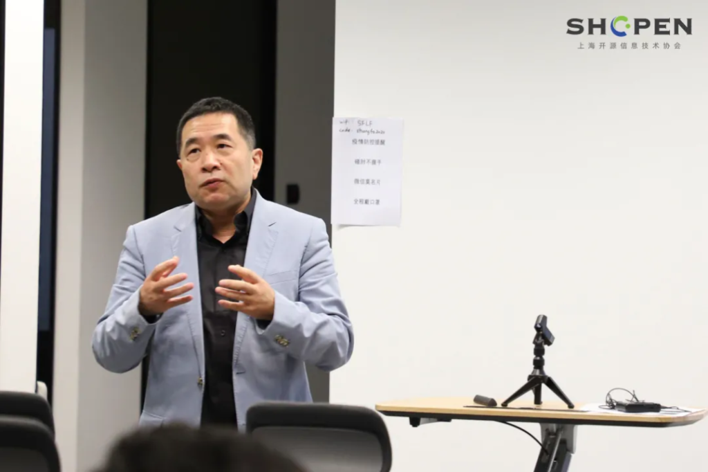 2020年11月8日下午,由上海开源信息技术协会联合上海市大数据社会应用研究会、上海浦东国际金融学会、上海市科技翻译学会共同主办的『开源开放·上海声音』2020开源技术开源商业学术研讨会在上海召开。会议采用线下研讨+线上直播的形式。上海市科学技术协会学术部潘祺部长发表致辞,上海开源信息技术协会副理事长杨滨代表协会致欢迎词,来自高校的专家学者、产业界开源人士和媒体代表出席了会议。会议由上海开源信息技术协会秘书长、上海对外经贸大学人工智能与变革研究院副院长张国锋主持。